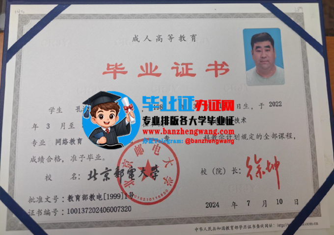 [本科毕业证样本] 排版制作北京邮电大学成人毕业证,北京邮电大学函授毕业证样本 日期:2026-03-31 10:24:51 点击:92 好评:0