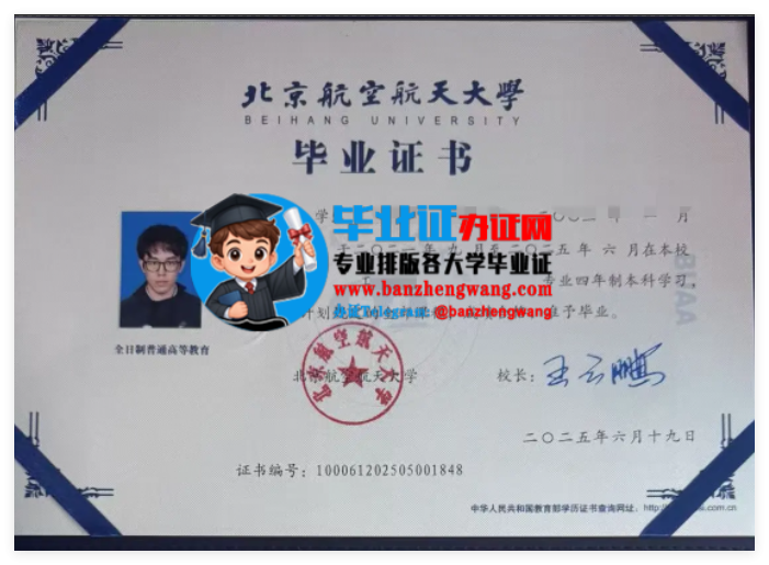 [本科毕业证样本] 办北京航空航天大学本科毕业证,排版制作北航专版本科毕业证 日期:2026-03-29 11:31:32 点击:135 好评:0