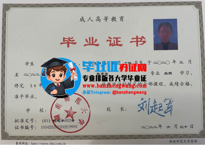 [本科毕业证样本] 专业制作湖南师范大学本科毕业证,湖南师范大学毕业证书样本 日期:2026-04-14 10:55:58 点击:104 好评:0